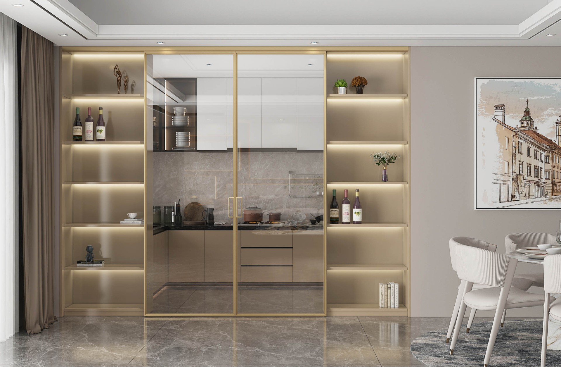 以木门、背景墙、系统门窗为基础的家场景立面装饰系统